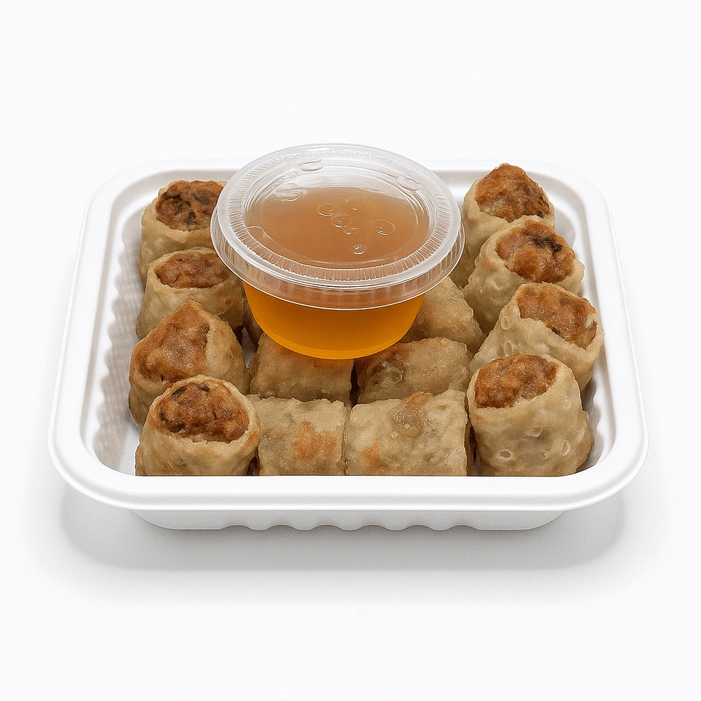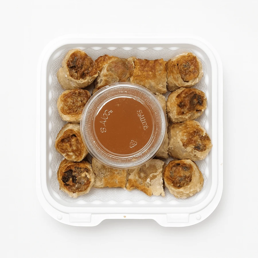 Four Vietnamese spring rolls stuffed with pork and served with fish sauce.